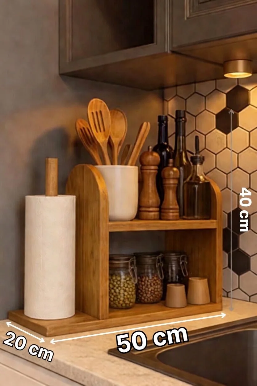 Cette étagère de rangement en bois est la solution idéale pour les femmes qui aiment une cuisine propre, pratique et bien structurée. Grâce à son design compact et moderne, elle optimise l’espace sans encombrer votre plan de travail.